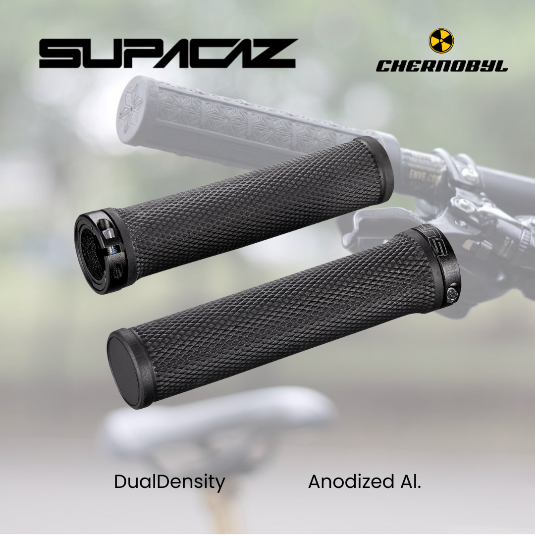 El caucho de alto rendimiento con dos densidades diferentes garantiza una excelente absorción de impactos. Sus propiedades de absorción de impactos reducen la fatiga no solo en las manos, sino también en todo el torso. Los anillos de bloqueo de aluminio anodizado negro garantizan un agarre óptimo y una fácil instalación. Las tapas de manillar integradas, revestidas de goma y con el logotipo de Supacaz, completan el diseño.